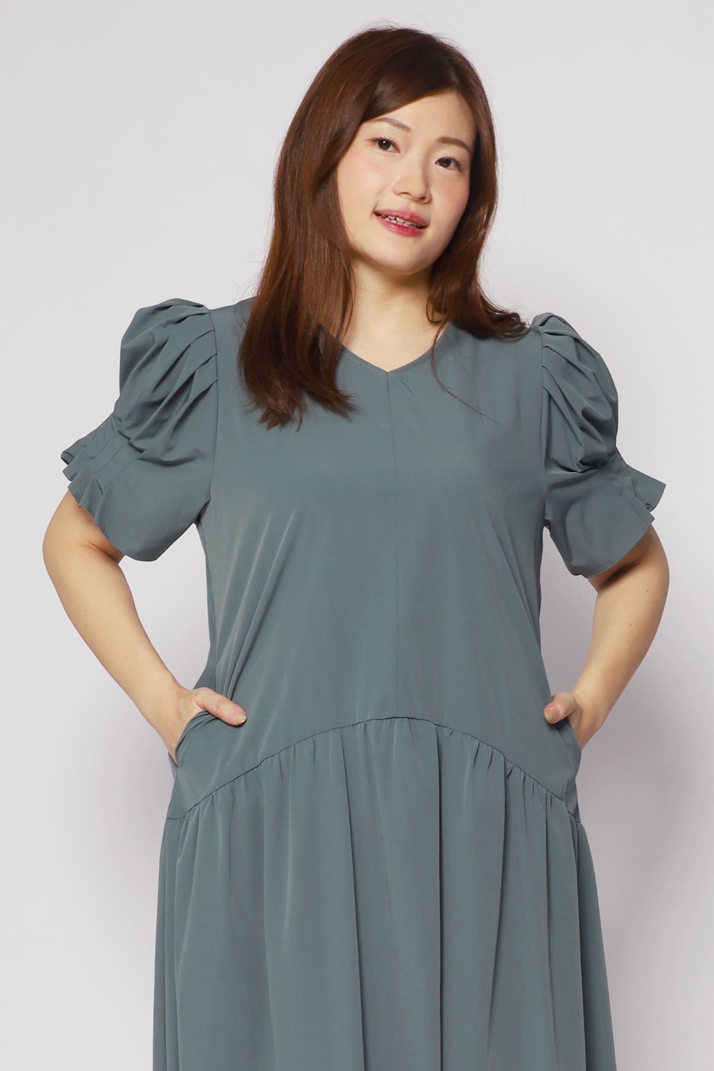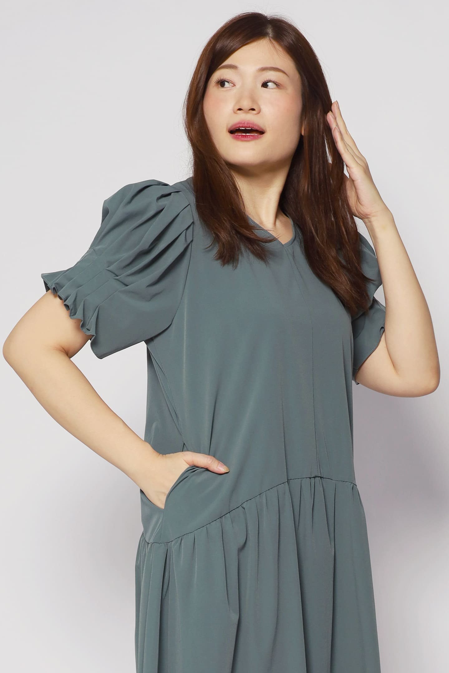 - Short pleated sleeves styling