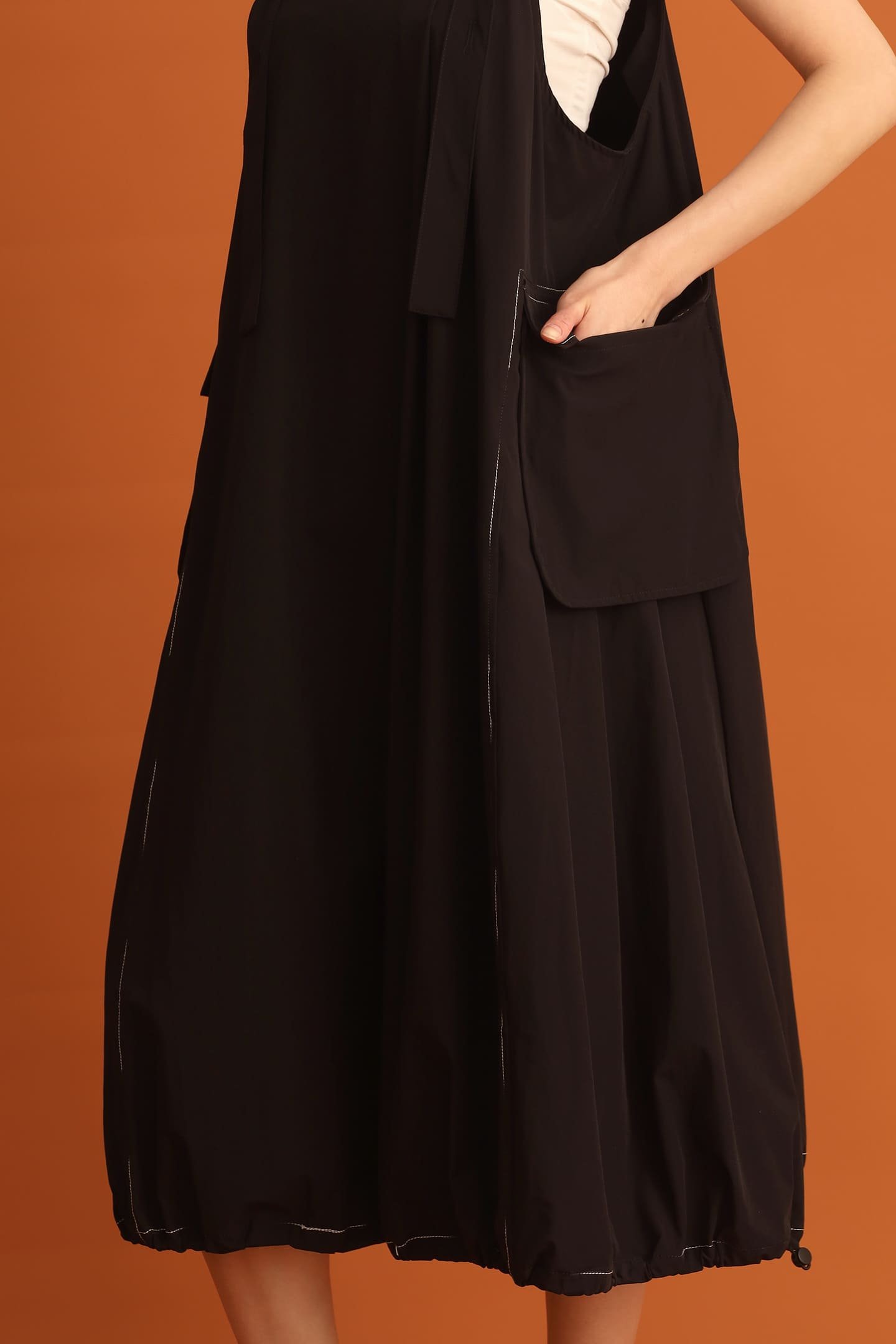 • Drawstring fastening along hemline