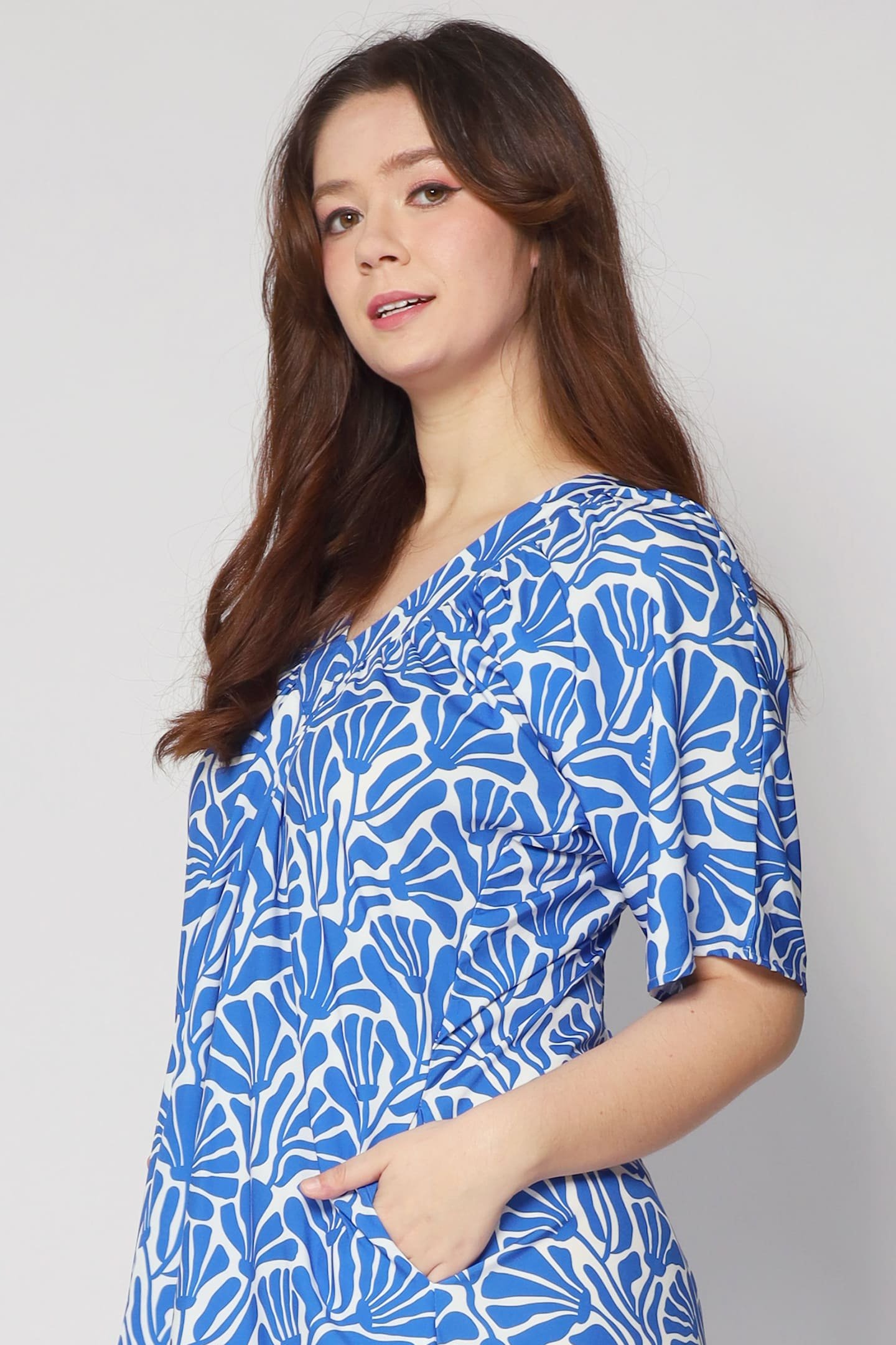 - V-neck with gathers